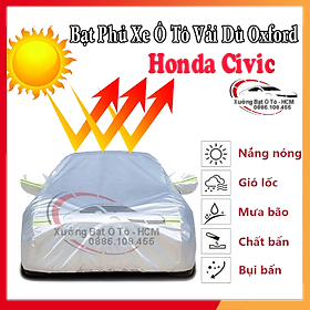 ✨[HONDA CIVIC] Bạt Phủ Ô Tô Vải Dù Oxford, Tráng Nhôm Cao Cấp, Áo Trùm Bảo Vệ Xe HONDA CIVIC, Bạc Phủ Trùm Chống Nóng Chống Mưa, Chống Xước Xe, Bạt Của Xưởng Được May Theo Kích Cỡ Xe, Cam Kết Vừa Xe, Bền Và Đẹp Tới 2 Năm