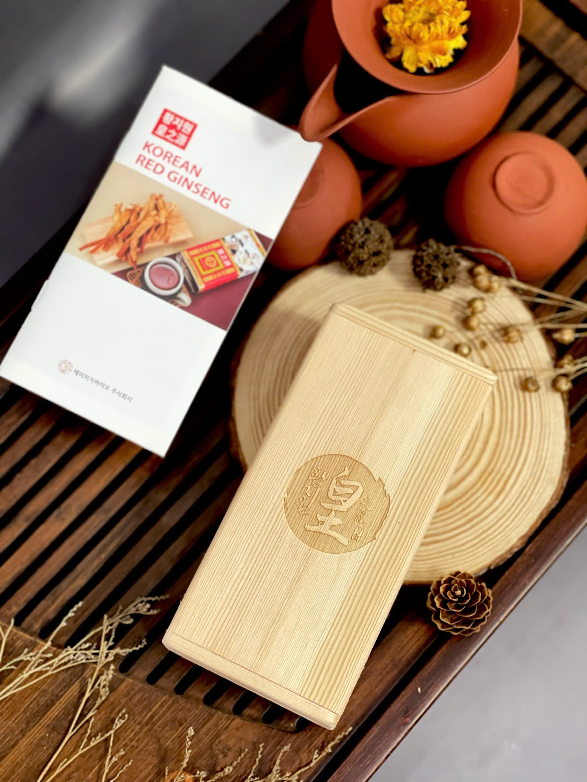 - 100% nhân sâm Hàn Quốc qua quá trình hấp sấy thành hồng sâm củ khô nguyên chất, được sấy khô và đóng hộp gỗ bên trong hộp thiếc bên ngoài đẹp sang. Công dụng: