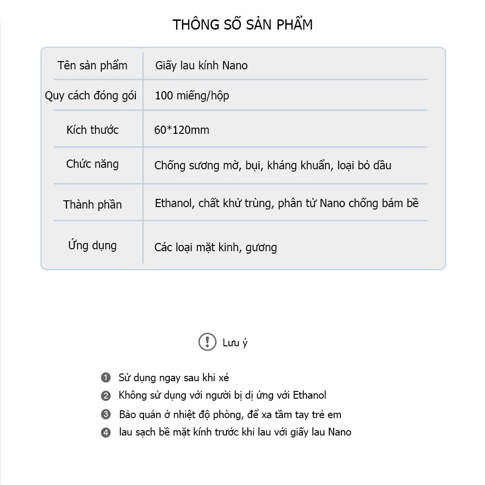 Tên sản phẩm: Khăn lau kính Nano hộp 100 miếng giấy lau kính chống bám hơi nước, lau sạch vân tay bụi bẩn