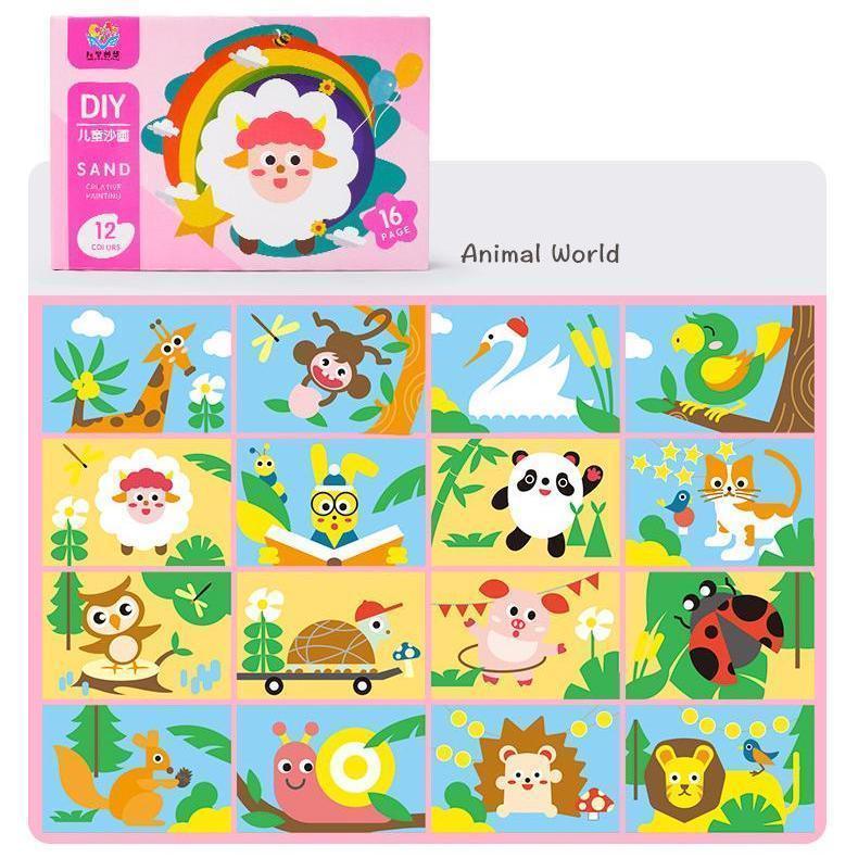 ✨Hộp 16 Tranh Cát DIY 21x14cm An Toàn Cho Bé Kèm 12 Lọ Màu Cát