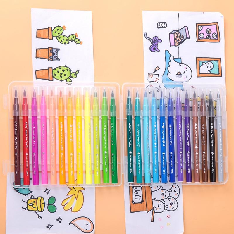Hộp 24 Bút Lông Màu Cọ Mềm - Deli EC10324 Bút lông màu mềm, lướt êm, mực ra đều, giúp viết và vẽ nhanh, đẹp. Nét mực có độ dày và độ đậm vừa phải,