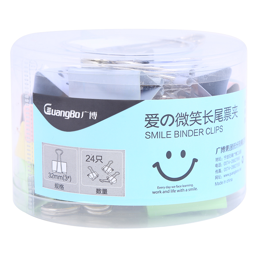 - Hộp 24 Kẹp Bướm Màu Mặt Cười Guangbo (32mm) có kích thước 32mm, độ mở rộng, có thể dùng để kẹp dọc hoặc kẹp ngang các khổ giấy. Sản phẩm thường được dùng trong