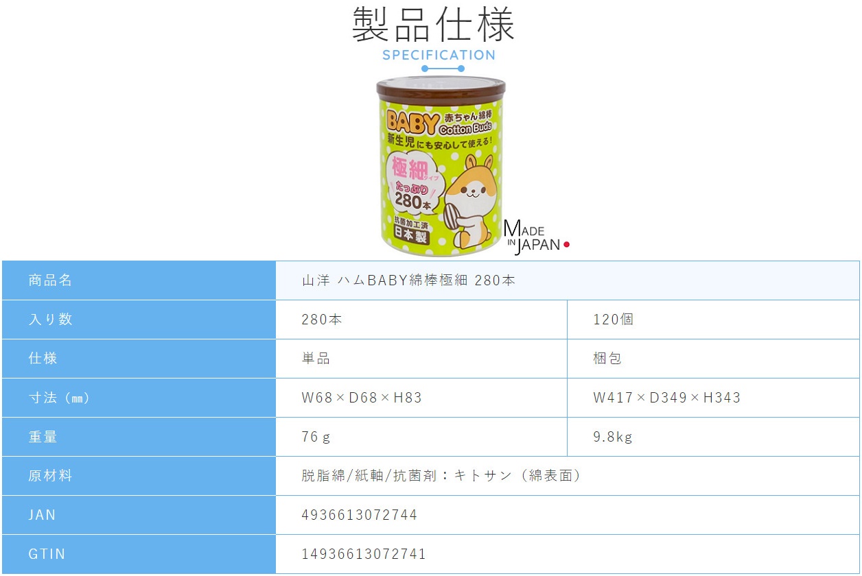 Hộp 280 tăm bông kháng khuẩn Sanyo, chất liệu 100% tự nhiên nên an toàn tuyệt đối khi sử dụng - nội địa Nhật Bản Thông tin chi tiết sản phẩm: Chất liệu: 100% Bông gòn