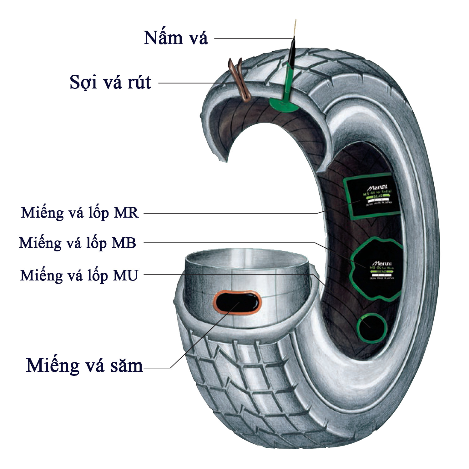 Phải là miếng vá săm Maruni chứ không phải là bất kỳ một miếng vá nào khác. Tại sao vậy, tại vì đây là giải pháp khắc phục sự cố quá hoàn hảo cho dành