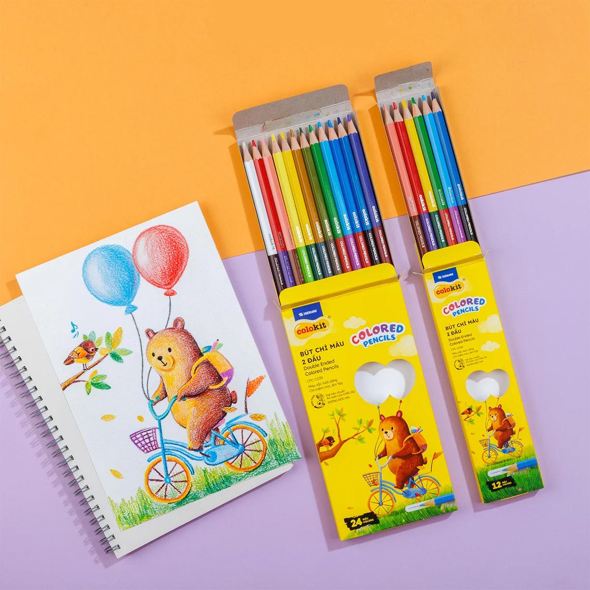 Bút chì màu là một trong những dụng cụ học tập quen thuộc của bé khi tới trường hay khi học ở nhà. Những nét vẽ ngây ngô, ngộ nghĩnh của bé sẽ thêm phần sinh động khi được bé tô vẽ với nhiều màu sắc khác nhau từ đó tăng khả năng học hỏi và khám phá cũng như kích thích sự sáng tạo của bé ngay từ nhỏ.