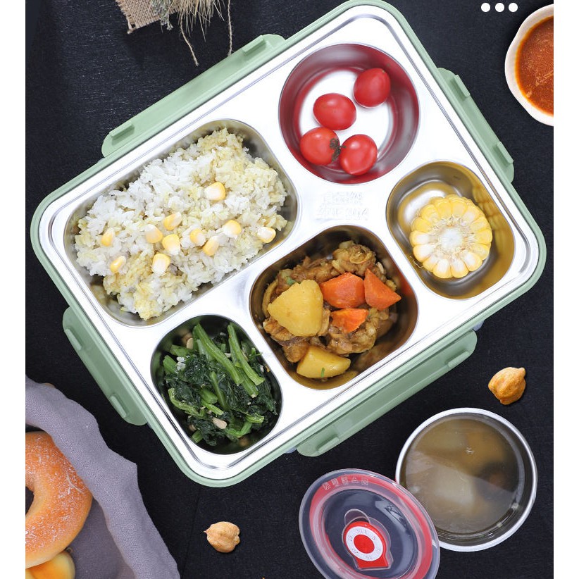 Bộ sản phẩm bao gồm 1hộp 5 ngăn inox 340, khay nhựa PP cao cấp