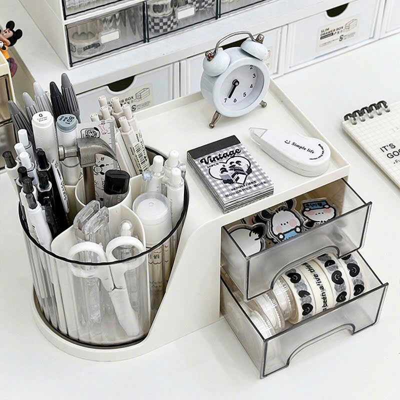 Hộp đựng bút, mỹ phẩm để bàn có kèm ngăn kéo tiện dụng là sự lựa chọn hoàn hảo để giúp bàn làm việc hay góc học tập của bạn thêm gọn gàng và phong cách.