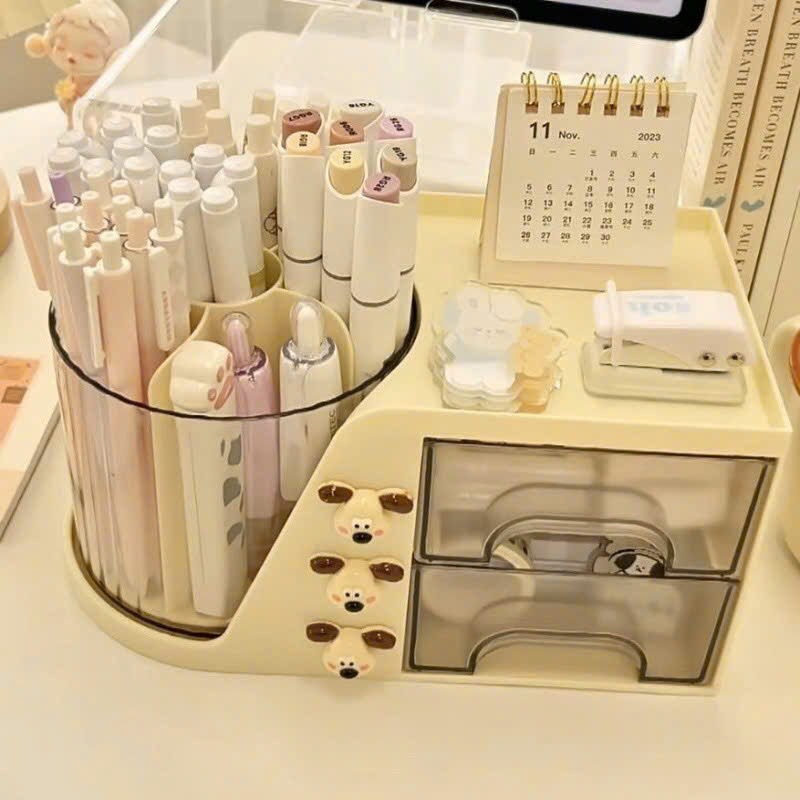 Hộp đựng bút để bàn là giải pháp lý tưởng để giữ cho không gian làm việc hoặc học tập của bạn luôn gọn gàng, ngăn nắp. Với thiết kế thông minh, hộp có ngăn kéo tiện dụng, giúp bạn lưu trữ không chỉ bút mà còn các vật dụng khác như văn phòng phẩm, mỹ phẩm, giấy tờ hay các đồ dùng cá nhân khác một cách dễ dàng. Đồng thời, hộp còn là món vật trang trí cho góc làm việc, tạo nên không gian làm việc hay học tập thêm phần sinh động và xinh xắn.