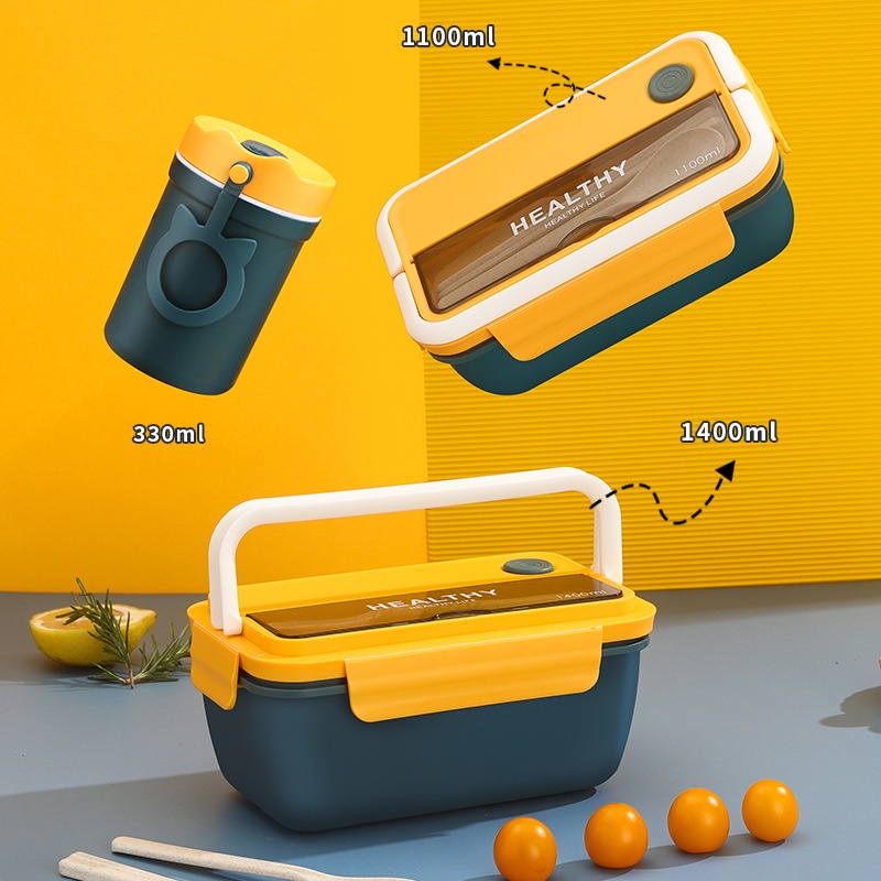 ✨Hộp đựng cơm văn phòng HEALTHY an toàn sức khỏe sử dụng trong lò vi sóng kèm đũa muỗng - HÀNG CHÍNH HÃNG MINIIN