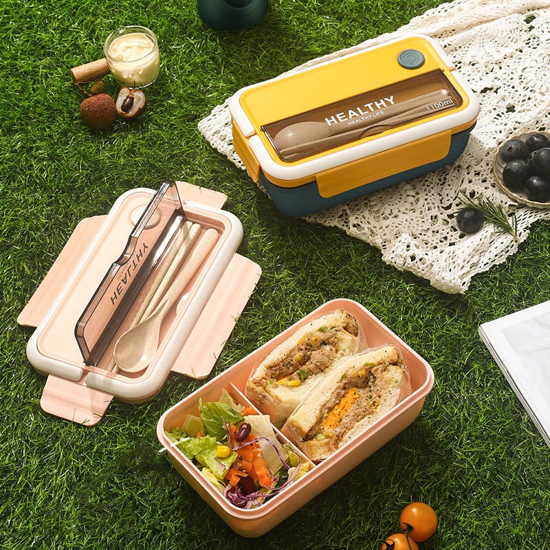 Hộp đựng cơm văn phòng HEALTHY an toàn sức khỏe sử dụng trong lò vi sóng kèm đũa muỗng - HÀNG CHÍNH HÃNG MINIIN