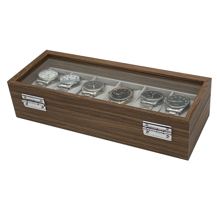 Hộp Đựng Đồng Hồ 6 Ngăn Vỏ Da Màu Vân Gỗ - Mã DH6DN
