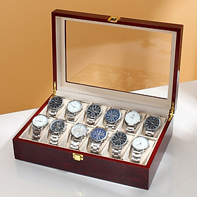 Hộp Đựng Đồng Hồ Đeo Tay 12 Ngăn SAIKE S1288 Vỏ Gỗ Cao Cấp