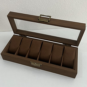 Hộp Đựng Đồng Hồ 6 Ngăn Vỏ Da Màu Vân Gỗ - Mã DH6DN