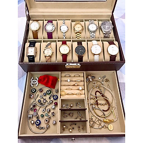 Hộp Đựng Đồng Hồ Và Trang Sức 2 Tầng Nâu
