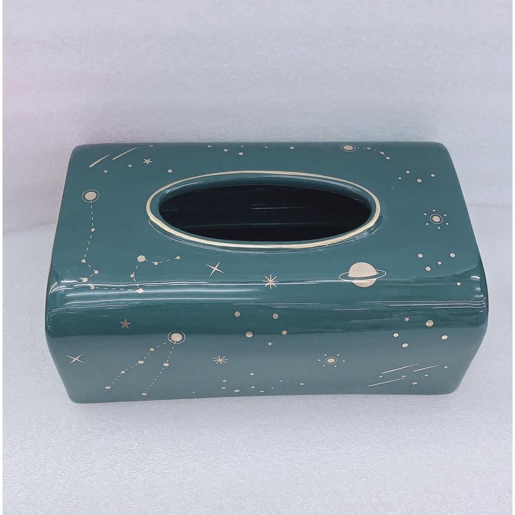✨HỘP ĐỰNG KHĂN GIẤY BẰNG SỨ MÀU XANH CỔ VỊT HỌA TIẾT TRĂNG SAO