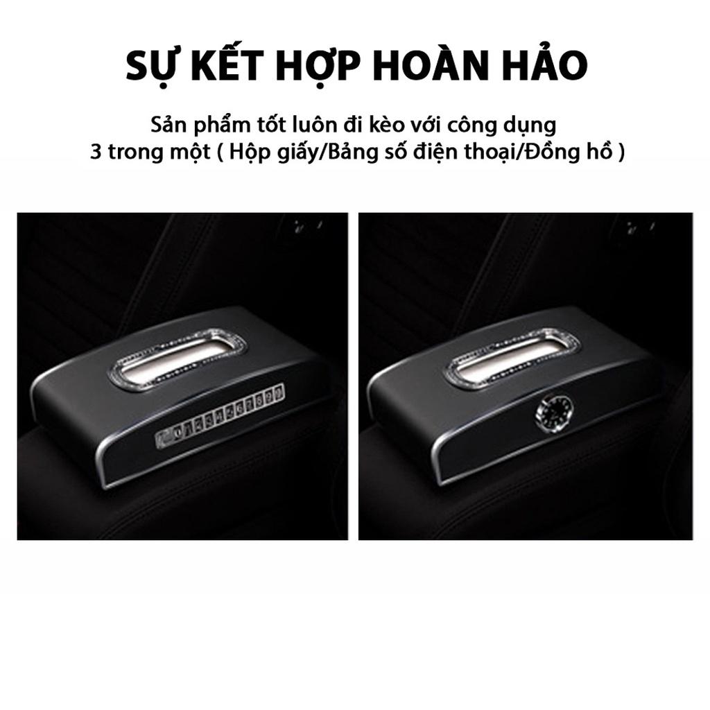 Hộp đựng khăn giấy trên ô tô có đồng hồ và bảng số điện thoại cao cấp tại ThanhBinhAuto