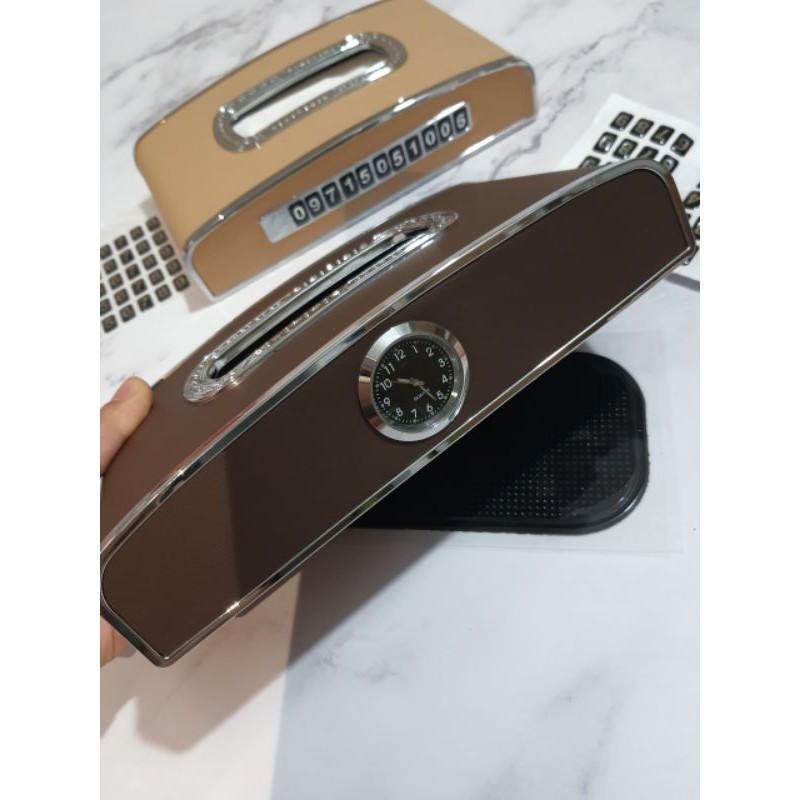 ✨Hộp Đựng Khăn Giấy Trên Ô Tô Có Đồng Hồ Và Bảng Số Điện Thoại Cao Cấp