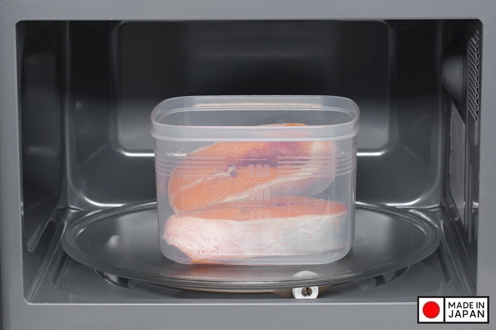 • Chỉ dùng hộp trong lò vi sóng với mục đích rã đông/ hâm nóng thức ăn, thực phẩm! Lưu ý Mở nắp hộp khi sử dụng trong lò vi sóng