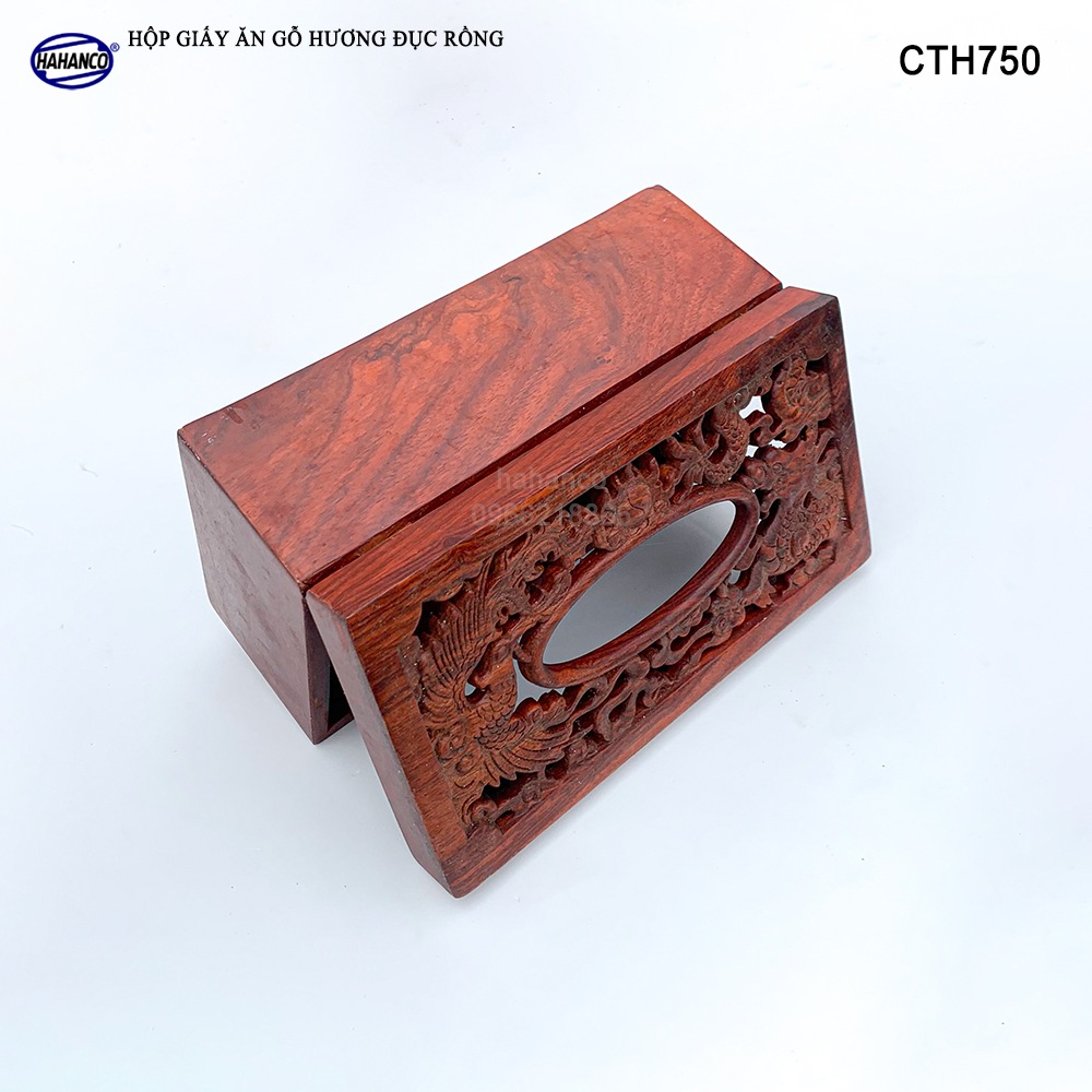 Hộp giấy ăn gỗ hương, đục khắc hoa văn tinh xảo, độc đáo, sang trọng.