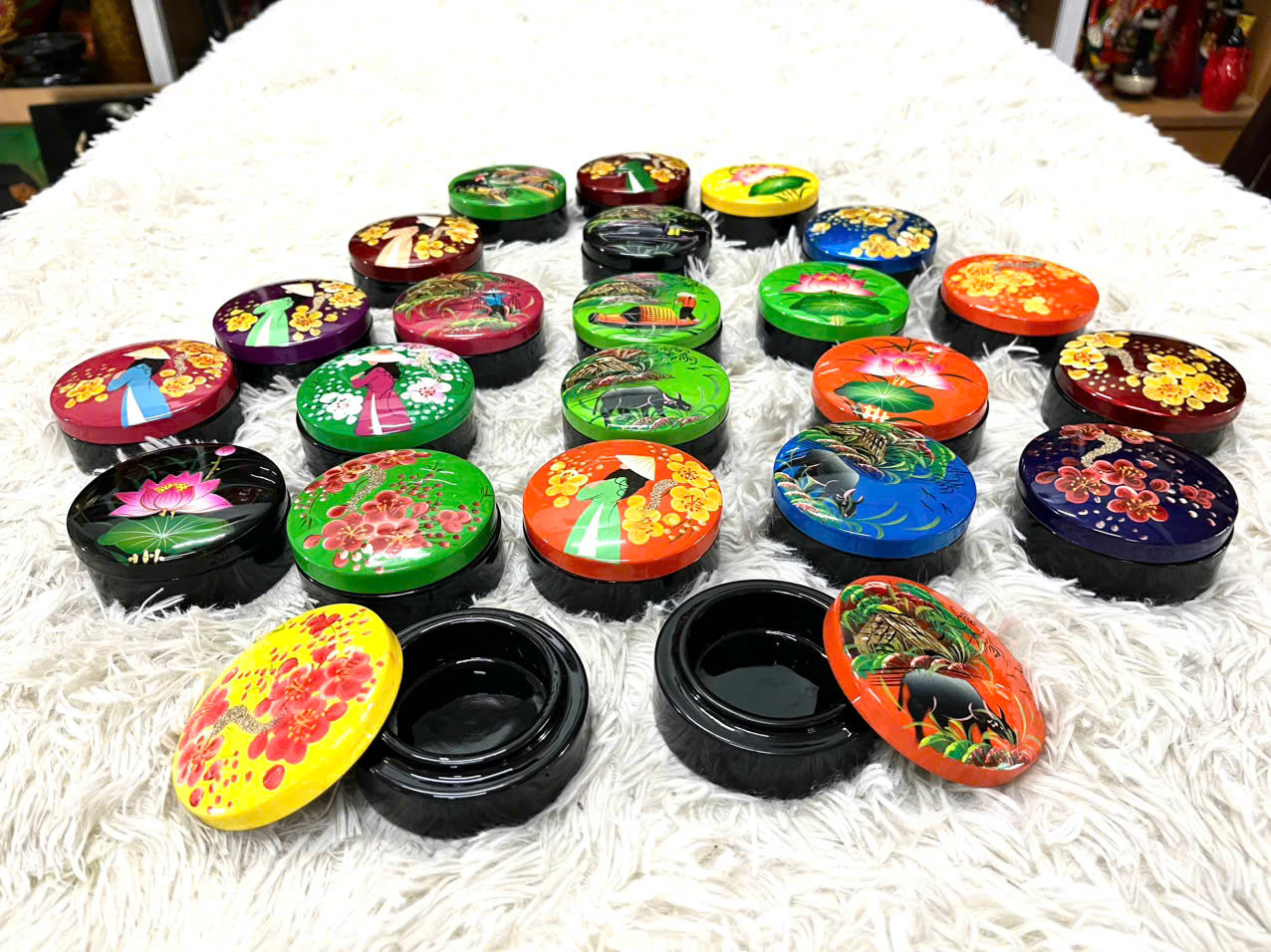 ✨Hộp phấn tròn sơn mài cao cấp Thanh Bình Lê size 10x5 cm đựng đồ vật nhỏ, bánh kẹo mứt, trang trí