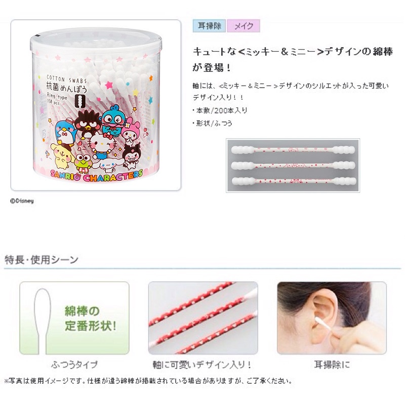 Hộp tăm bông vệ sinh tai Sanyo in họa tiết đáng yêu cho bé - Nội địa Nhật Bản: * Chất liệu: 100% Bông gòn tự nhiên mềm mại không gây đau rát khi sử