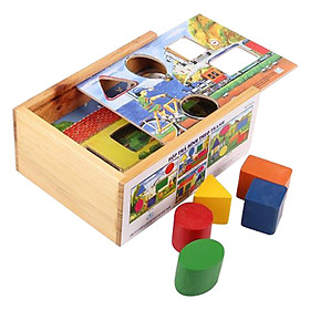 • Hộp thả hình theo tranh giúp bé nhận biết khối hình và xác định vị trí đặt để các hình khối có thể xuyên các lỗ trên hộp khối, nhờ đó mà bé có thể học nhận biết hình khối từ hình vuông, hình tam giác… và các màu sắc cơ bản, hợp với trẻ thơ như: hồng, đỏ, xanh lá cây…