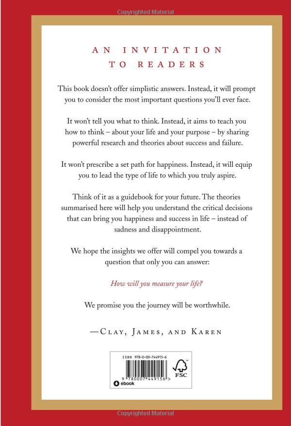 How Will You Measure Your Life? is full of inspiration and wisdom, and will help students, midcareer professionals, and parents alike forge their own paths to fulfillment.