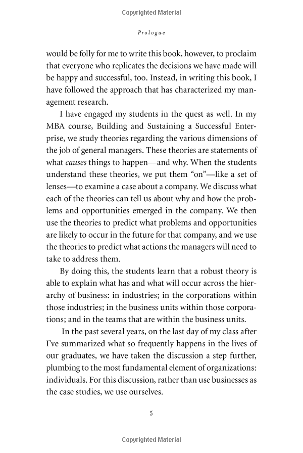 In this groundbreaking book, Christensen puts forth a series of questions: How can I be sure that I'll find satisfaction in my career? How can I be sure that my personal relationships become enduring sources of happiness? How can I avoid compromising my integrity-and stay out of jail? Using lessons from some of the world's greatest businesses, he provides incredible insights into these challenging questions.
