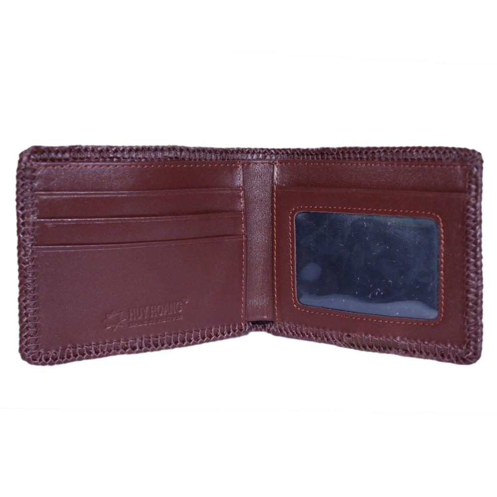 Ví/Bóp nam Huy Hoàng da bò đan viền màu nâu 2136