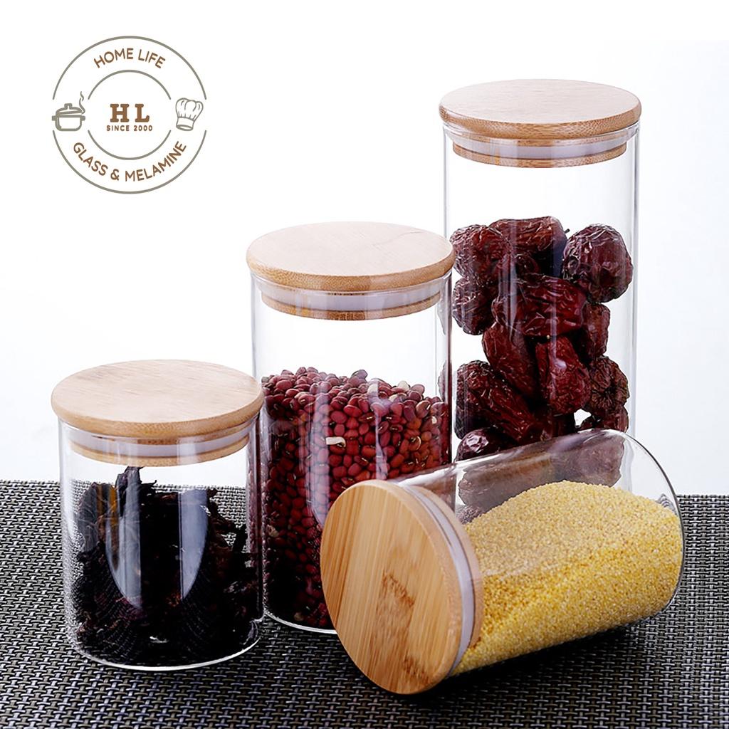 ✨Hũ Thủy Tinh Kín Hơi, Chống Tràn Đựng Bánh Kẹo Và Gia Vị Trang Trí | LỌ TRE TRÒN THỦY TINH NẮP GỖ TRE