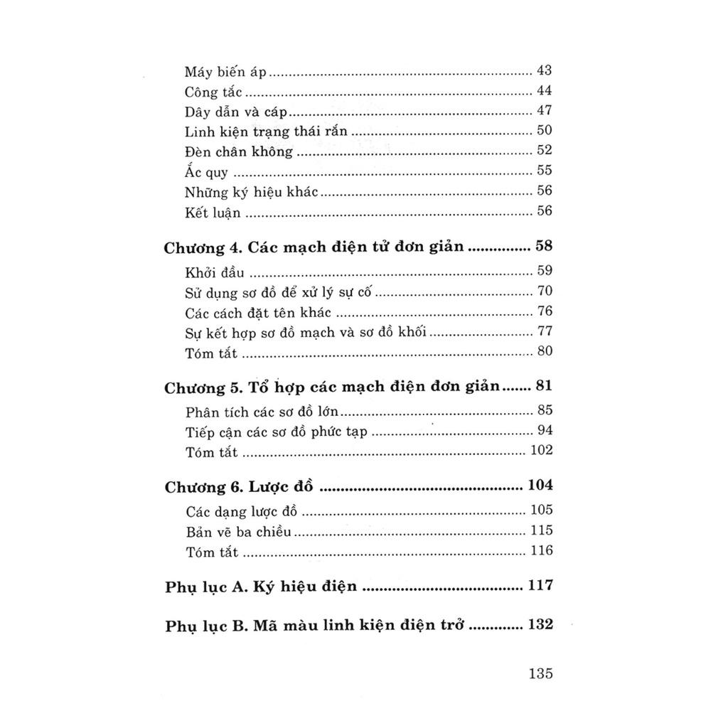 Chương 1: Các dạng sơ đồ mạch điện tử Chương 2: Sơ đồ khối Chương 3: Ký hiệu trên sơ đồ mạch Chương 4: Các mạch điện tử đơn giản Chương 5: Tổ hợp các mạch điện tử đơn giản Chương 6: Lược đồ