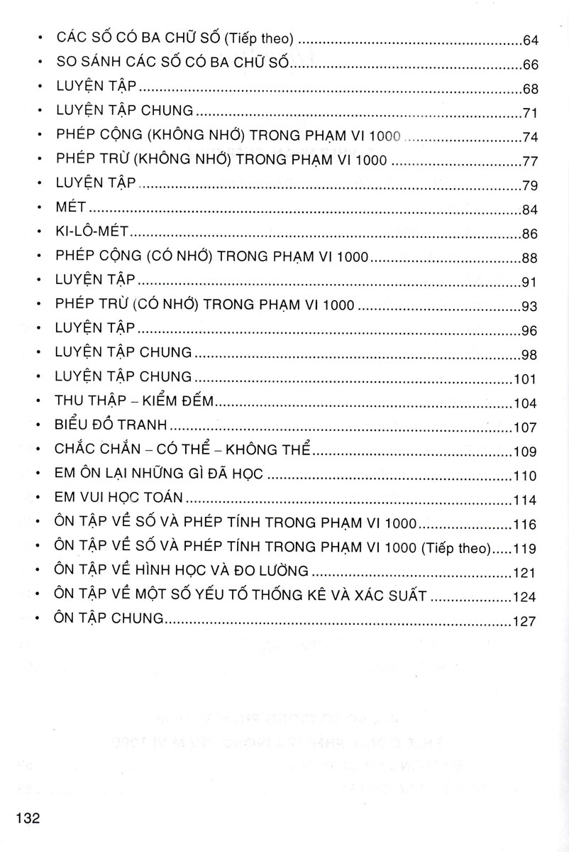 Bên cạnh các bài giảng được biên soạn chi tiết theo nội dung từng bài học, sách còn bao gồm nhiều hướng dẫn mà các em có thể tham khảo và ứng dụng để giải các bài tập toán lớp 2 một cách chuẩn xác. Đồng thời các dạng bài tập nâng cao sẽ giúp các em có thêm sự rèn luyện để nâng cao kỹ năng giải toán và trở thành học sinh giỏi môn Toán.