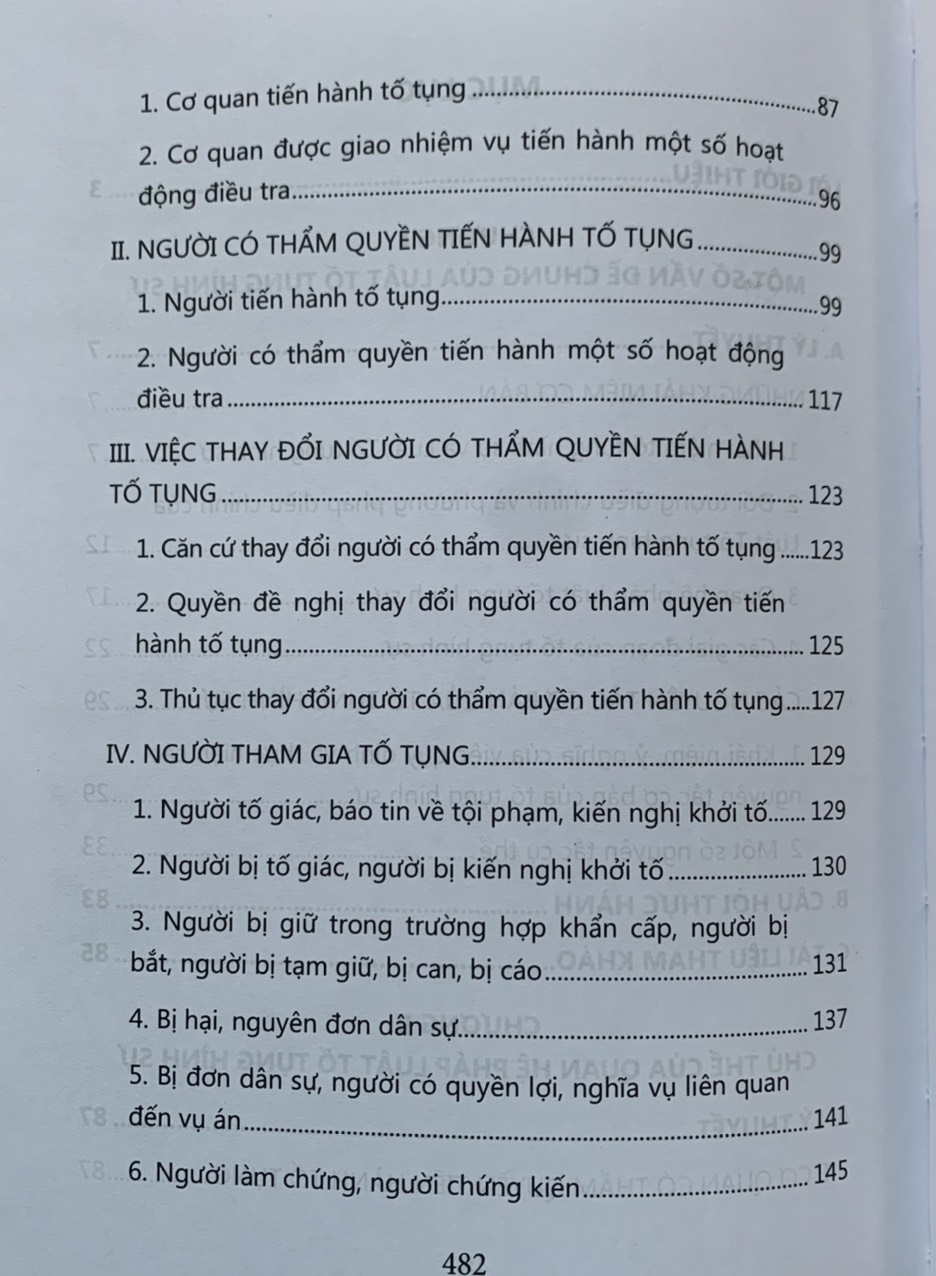 Cuốn sách gồm 9 phần, 510 điều, quy định trình tự, thủ tục tiếp nhận, giải quyết nguồn tin về tội phạm, khởi tố, điều tra, truy tố, xét xử và một số thủ tục