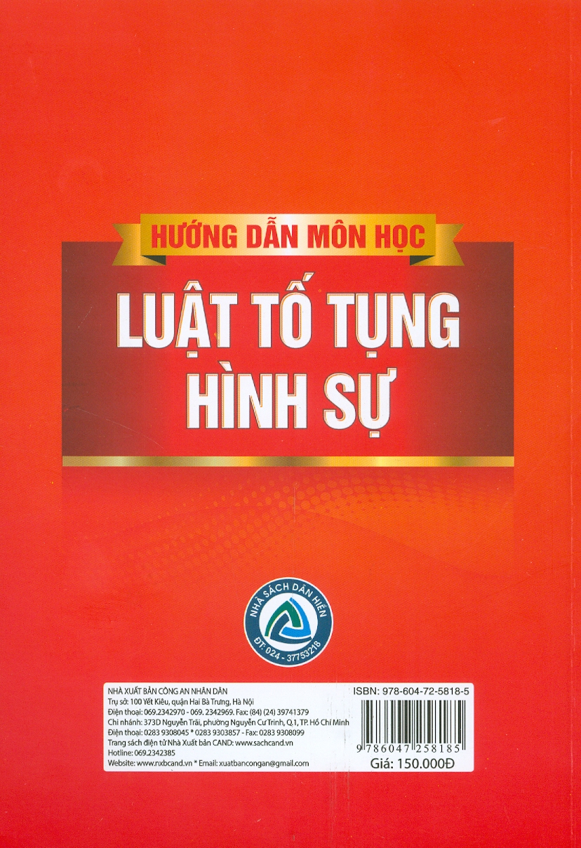 Hướng dẫn môn học Luật tố tụng hình sự Tác giả: TS. Trần Thị Liên (chủ biên) Nhà xuất bản: Công an Nhân dân Công ty phát hành: Dân Hiền Bìa sách: Bìa mềm Khổ