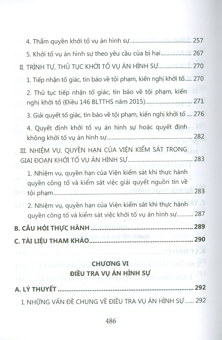 Cuốn sách gồm 9 phần, 510 điều, quy định trình tự, thủ tục tiếp nhận, giải quyết nguồn tin về tội phạm, khởi tố, điều tra, truy tố, xét xử và một số thủ tục