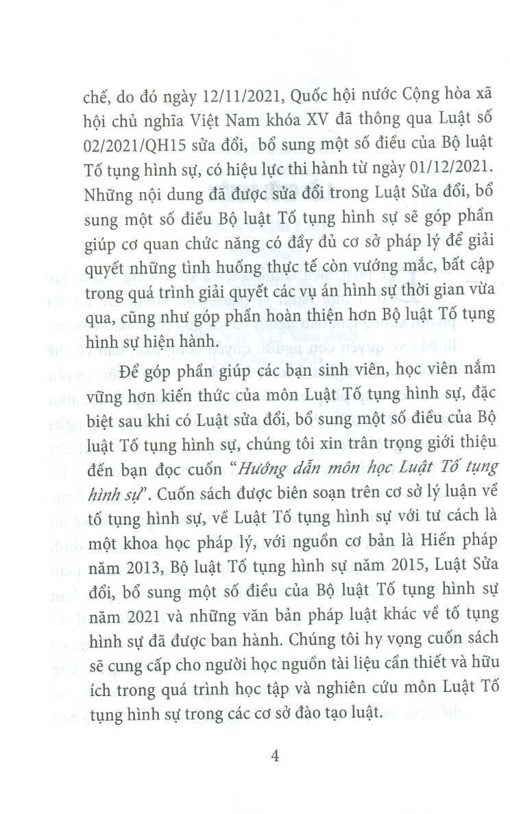 Phiên bản Bộ luật tố tụng hình sự năm 2015 (đính kèm 4 trang nội dung chỉnh sửa năm 2021), nên bạn đọc cân nhắc khi mua tham khảo Bộ luật tố tụng