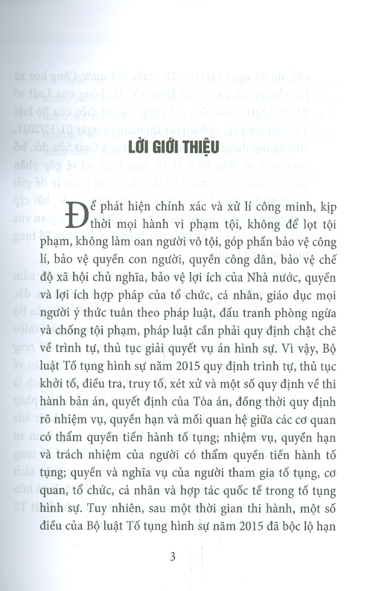 LỜI GIỚI THIỆU Bộ luật Tố tụng hình sự số 101/2015/QH13 ngày 27 tháng 11 năm 2015 của Quốc hội, có hiệu lực kể từ ngày 01 tháng 7 năm 2016, được sửa đổi,