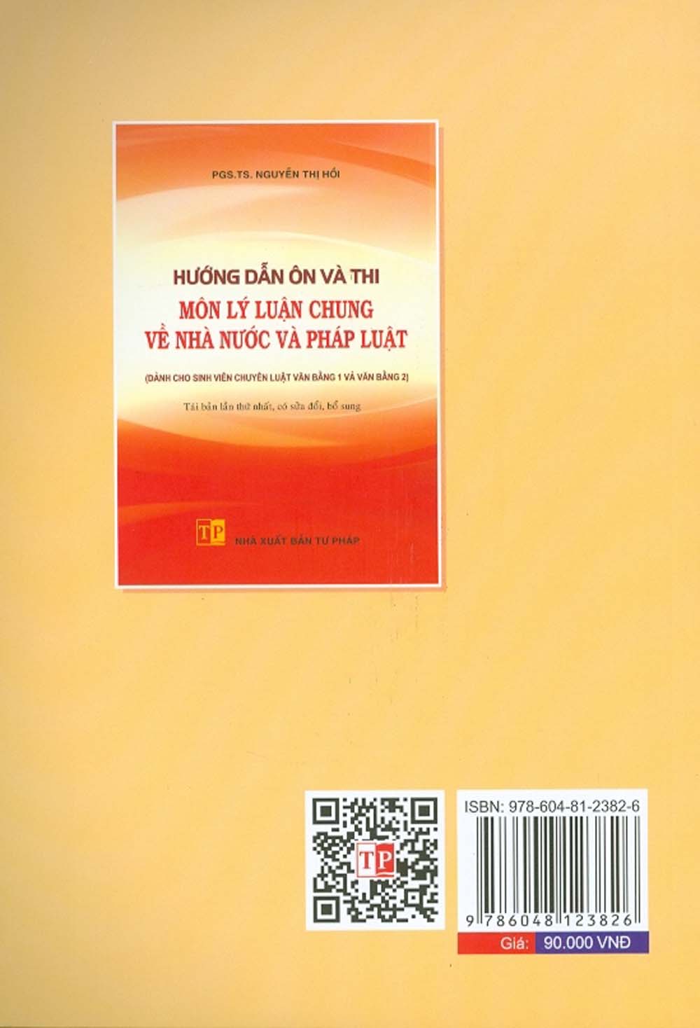 Với mong muốn giúp người học dễ dàng và thuận lợi hơn trong việc tổng hợp , hệ thống hóa, khái quát hóa và nắm được những kiến thức cơ bản để phục vụ cho việc học tập các môn chuyên ngành và thi tốt môn Lý luận chung về Nhà nước và Pháp luật, Nhà xuất bản Tư pháp bổ sung cuốn: "Hướng dẫn ôn và thi môn Lý luận chung về Nhà nước và Pháp luật" (Dành cho sinh viên chuyên luật văn bằng 1 và văn bằng 2)