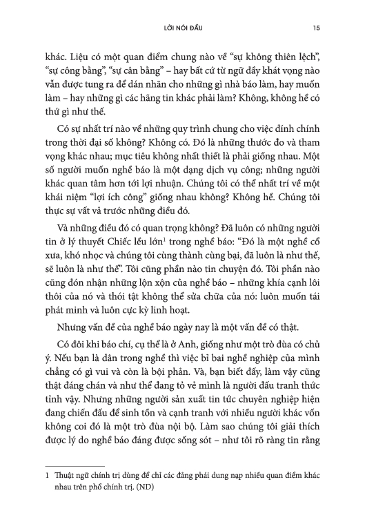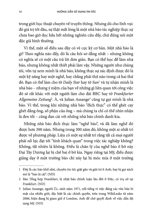 Hướng Dẫn Sử Dụng Tin Tức - Tin Vào Đâu Trong Một Thế Giới Ngập Tràn Tin Giả     Không có sự thật thì không thứ gì trên đời hiệu quả. Một xã hội không chắc chắn điều gì là thật sẽ không thể vận hành. Không có sự thật thì không thể có chính phủ hoặc luật pháp. Khoa học bị phớt lờ. Niềm tin tan biến. Ngày nay, tin giả ngập tràn trên mạng Internet. Chúng ta đều rõ điều đó, nhưng đôi khi, chúng ta vẫn quên mất là tin giả lúc nào cũng luôn tồn tại. Ngạn ngữ xưa từng nói: “Đừng bao giờ tin bất cứ điều gì cho đến khi nó được chính thức phủ nhận”. Nhưng câu khẩu hiệu của New York Times “tất cả những tin tức mà phù hợp để đưa lên báo” luôn gợi lên câu hỏi “ai quyết định tin nào là phù hợp?”. Một số độc giả cả tin, sẵn sàng tin vào bất cứ thứ gì, trong khi những người khác hoài nghi đến mức cay độc. Nhiều người còn có xu hướng tin vào tin tức giả mạo, thông tin sai lệch và các thuyết âm mưu.  Mọi người ở khắp mọi nơi hơn bao giờ hết cảm thấy xa lánh và không tin vào tin tức và những người viết ra chúng. Chúng ta dường như không còn biết phải tin ai hoặc tin vào cái gì nữa. Chúng ta đang sống qua một cuộc khủng hoảng “hỗn loạn thông tin”.  Hướng dẫn sử dụng tin tức: Tin vào đâu trong một thế giới ngập tràn tin giả là một bảng hướng dẫn cho thời đại hoang mang này. Từ AI đến robot, từ khủng hoảng khí hậu đến tin tức giả mạo, từ “mồi câu view” đến “chiêu bài gây sự” (và hơn thế nữa), đây là hướng dẫn tối thượng dành cho người dùng về cách nắm bắt thông tin, phân biệt sự thật và hư cấu, và bắt những người có quyền lực phải chịu trách nhiệm trong thời hiện đại. Đây là một cuốn sách khiến người ta đồng tình và rất có giá trị. Nó thôi thúc bạn suy nghĩ và đặt câu hỏi. Sách giàu thông tin và có tính giải trí.    Công ty phát hành NXB Trẻ Năm Xuất Bản 2025 Tác Giả Alan Rusbridger Kích Thước 14 x 20 cm Nhà Xuất bản Trẻ Số Trang 412 Bìa Mềm Barcode 8934974207634