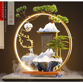 Thác Nước Phong Thủy Kỳ Lân, Rồng, Hươu Kèm Đèn Led tặng kèm cây xanh và nụ trầm
