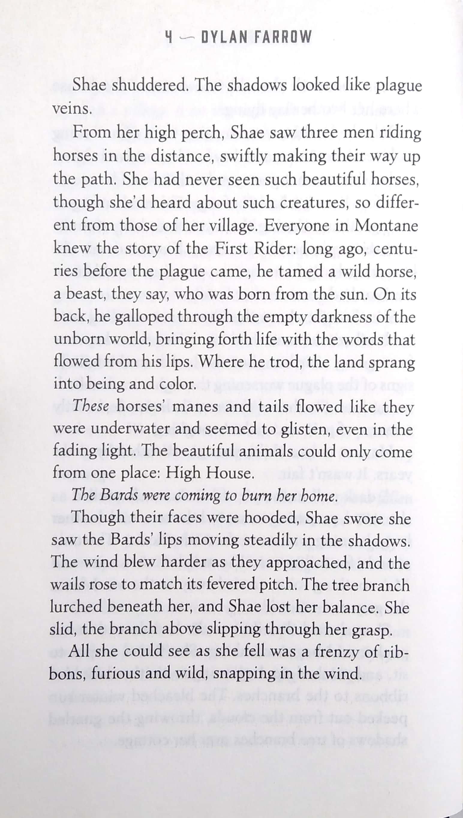 Seventeen-year-old Shae has led a seemingly quiet life, joking with her best friend Fiona, and chatting with Mads, the neighborhood boy who always knows how to make her smile. All while secretly keeping her fears at Of the disease that took her brother's life. Of how her dreams seem to bleed into reality around her. Of a group of justice seekers called the Bards who claim to use the magic of Telling to keep her community safe.