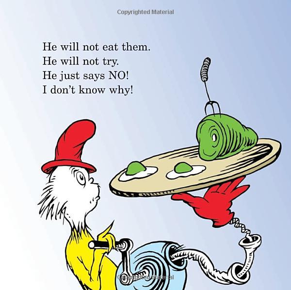 In this sweet, sturdy board book, Sam-I-Am shares the story of how he persuades his friend to try green eggs and ham. (What's Sam's secret? He never stops trying, of course!) Written in rhymed verse, this funny board book is an ideal introduction to the story for toddlers and preschoolers too young for the classic Beginner Book. Now everyone in the family--even pre-readers--can share in the fun and learn a valuable life lesson about trying new things!