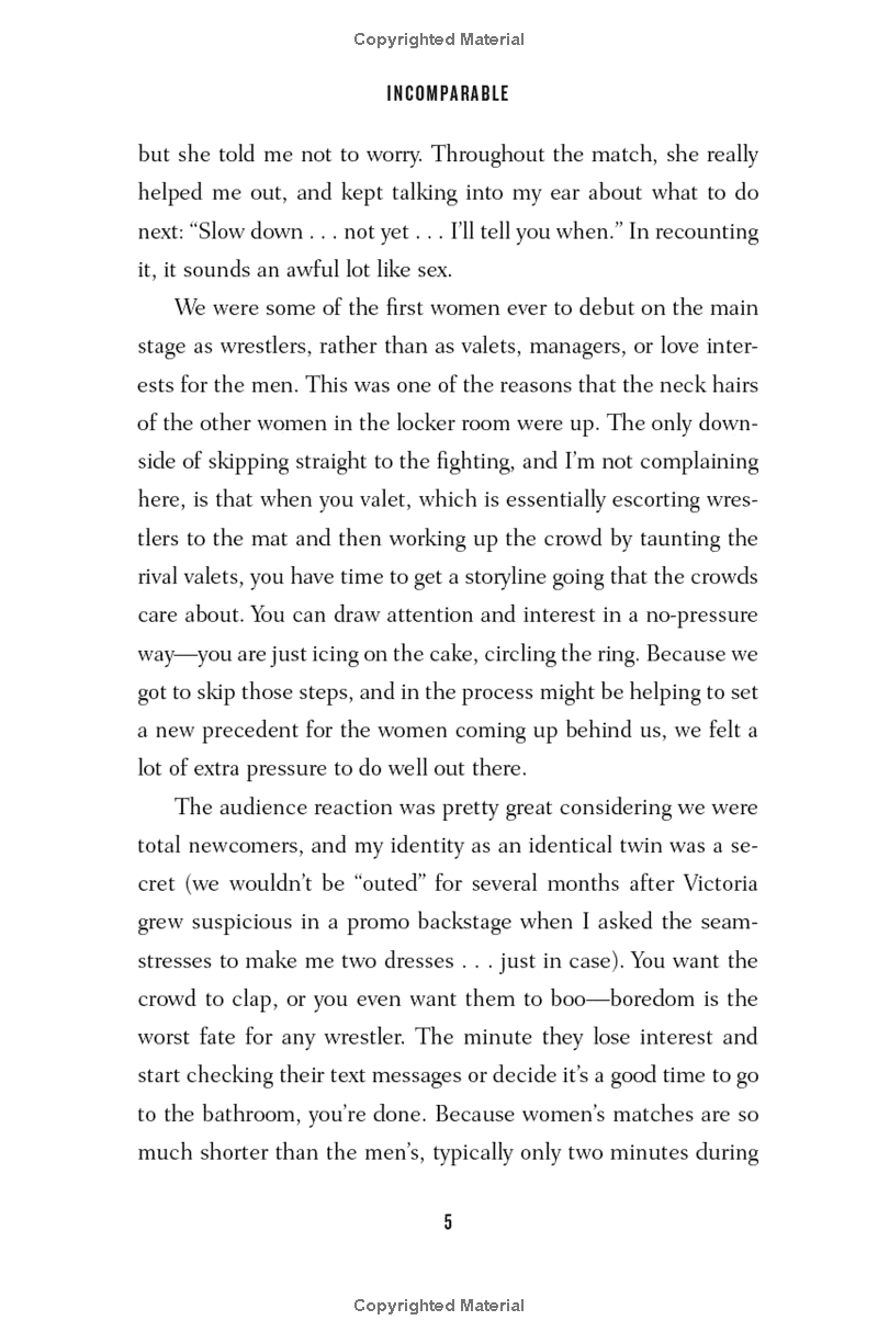 Incomparable THE INSTANT NEW YORK TIMES BESTSELLER A raw, honest, and revealing co-memoir by Brie and Nikki Bella: twin sisters, WWE Hall of Fame inductees, and stars of the hit E! shows Total Bellas and Total Divas. As twins, the