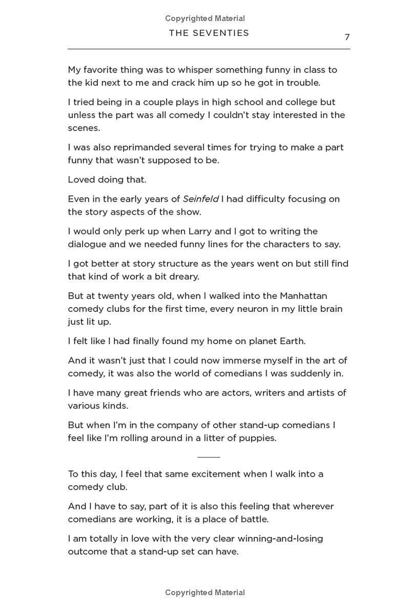 For this book, Jerry Seinfeld has selected his favorite material, organized decade by decade. In page after hilarious page, one brilliantly crafted observation after another, readers will witness the evolution of one of the great comedians of our time and gain new insights into the thrilling but unforgiving art of writing stand-up comedy.