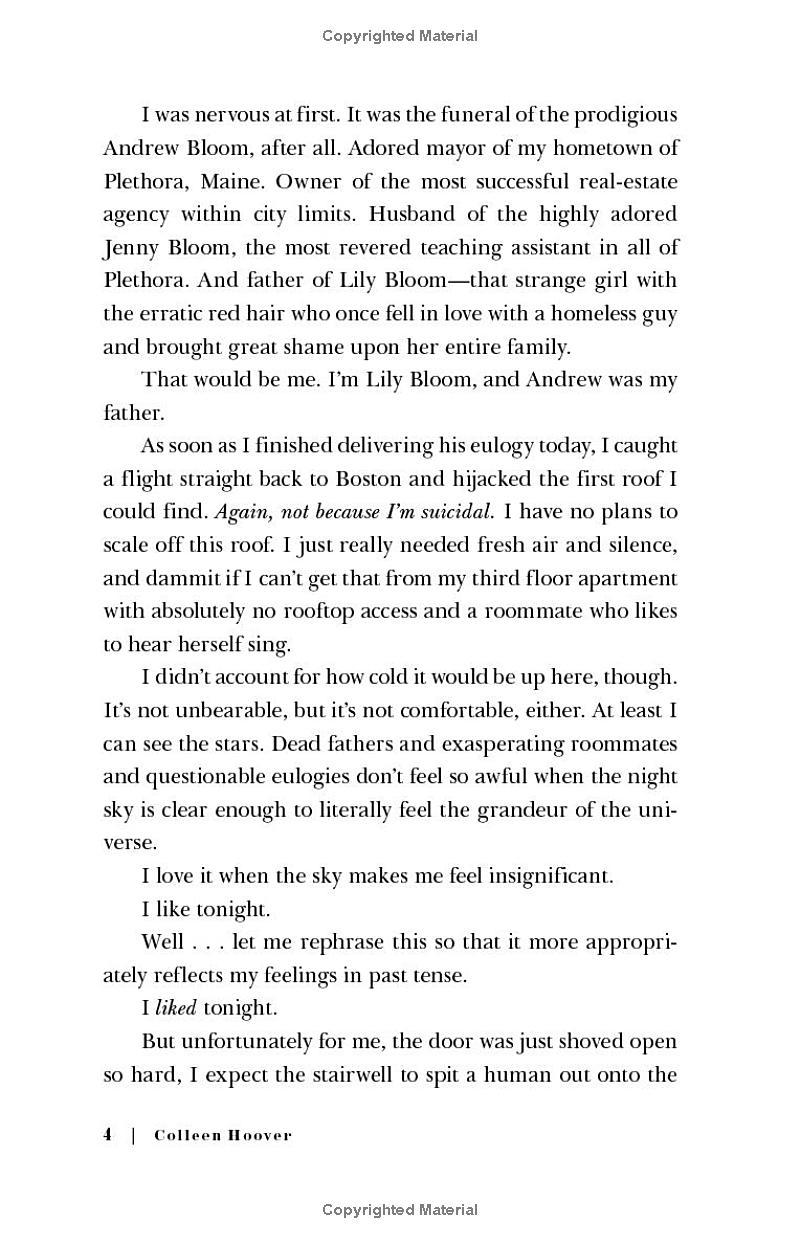 Lily hasn’t always had it easy, but that’s never stopped her from working hard for the life she wants. She’s come a long way from the small town in Maine where she grew up—she graduated from college, moved to Boston, and started her own business. So when she feels a spark with a gorgeous neurosurgeon named Ryle Kincaid, everything in Lily’s life suddenly seems almost too good to be true.