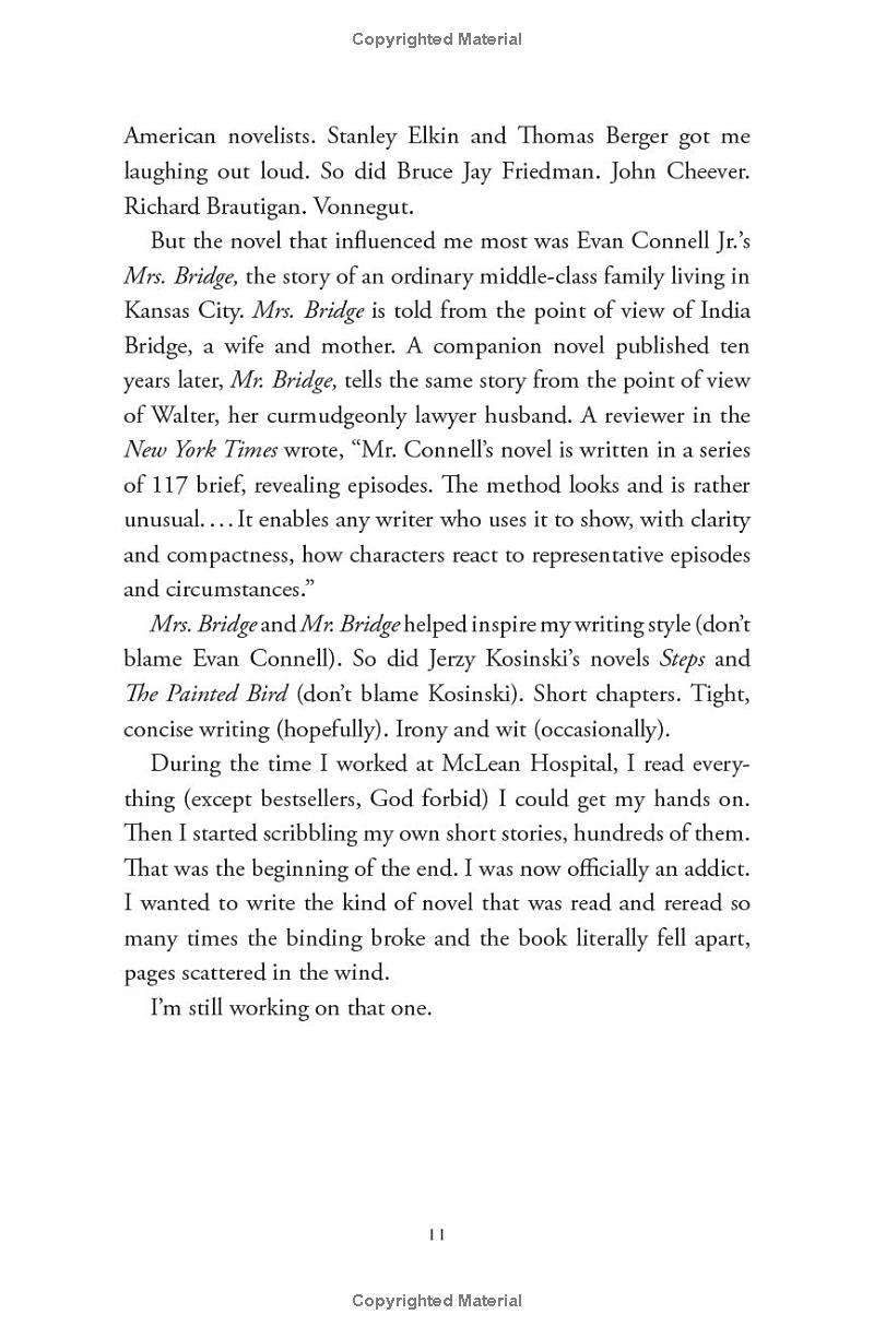 He has always wanted to write the kind of novel that would be read and reread so many times that the binding breaks and the book literally falls apart. As he says, "I'm still working on that one."