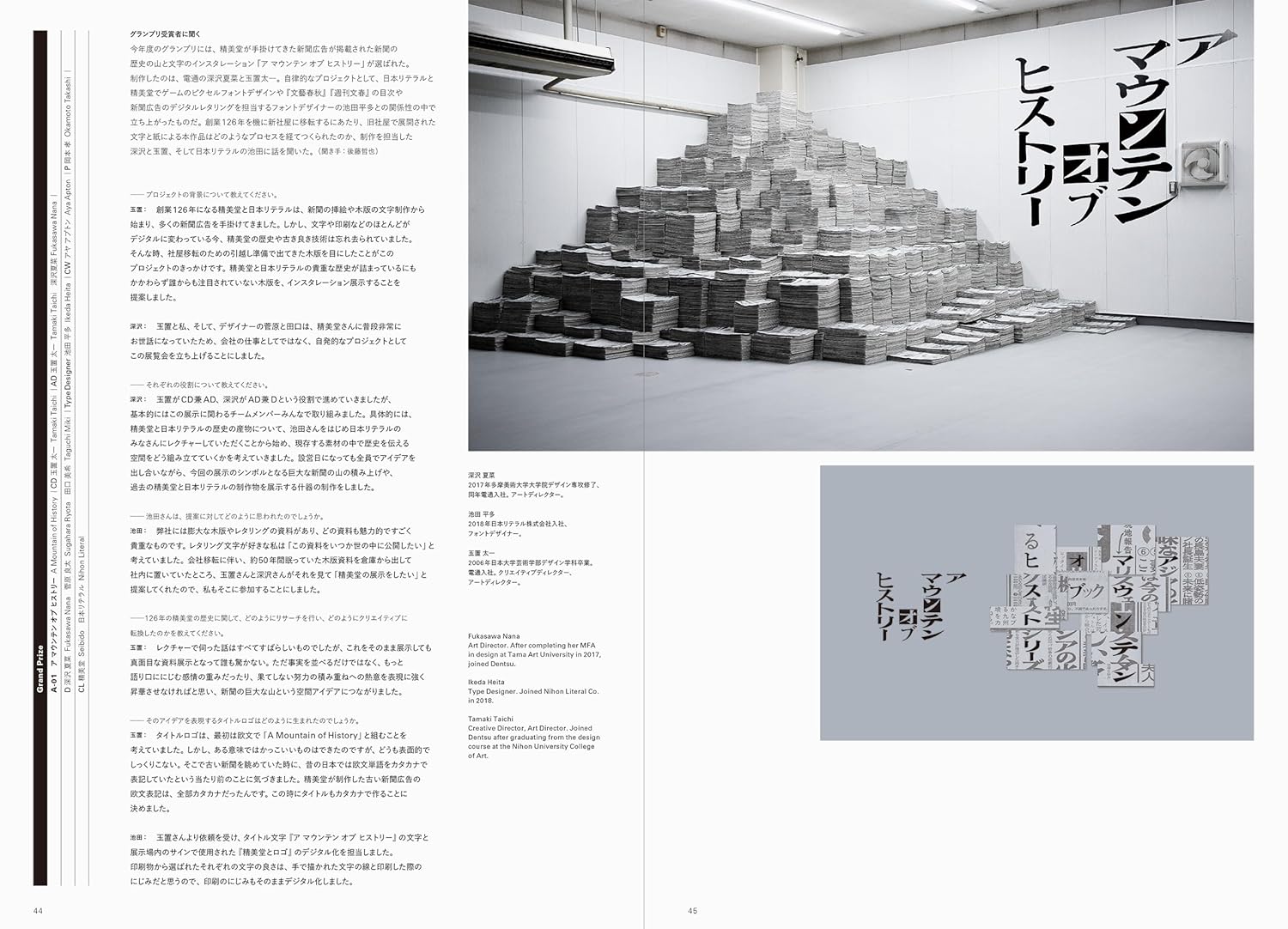 This book features more than 400 works carefully selected by 14 judges from the Japan Typography Association. With works accepted from all over the world through a public call for submissions, judges chosen from association members and the previous year's Grand Prix winner conducted a rigorous evaluation process to select one Grand Prix winner from all the entries, along with a “Best Work Award” in each category. A “Jury Award” is awarded to works or designers highly rated by the judges from their individual perspectives.
