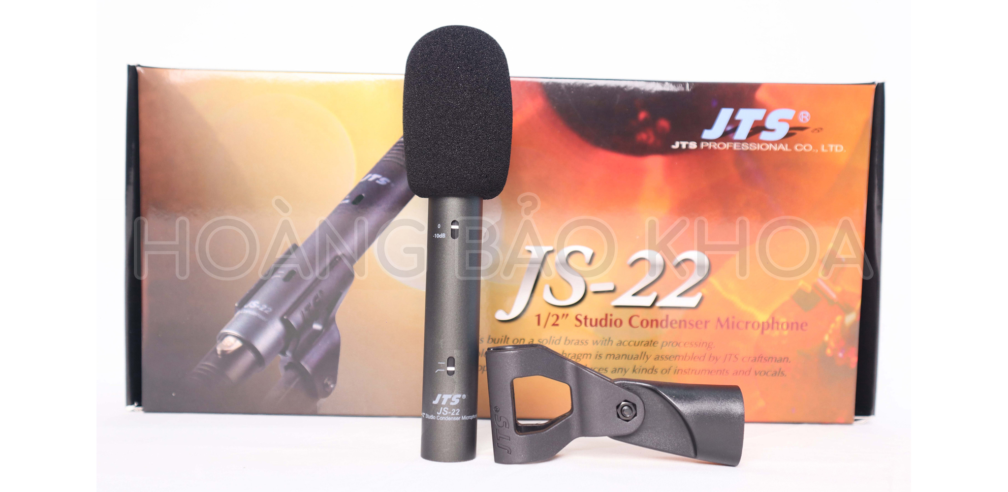 Tính năng nổi bật  Kiểu: Condenser Mic  Đáp ứng tần số: 20 đến 20,000 Hz  Độ nhạy: -36±3 dB* (15.8mV) 0dB=1V /Pa,1kHz  Directional Pattern: Cardioid Dựa trên kinh nghiệm thành công từ dòng sản phẩm JS-1, JS-22 được thiết kế để thu âm các loại nhạc cụ từ dây đàn đến nhạc cụ gõ. JS-22 được xây dựng trên một khung đồng nguyên khối với quá trình chế tác chính xác. Màng mạ vàng 1/2 inch được lắp ráp thủ công bởi các nghệ nhân của JTS. Mạch điện được thiết kế chính xác với tính năng cắt tần số thấp và giảm âm lượng cung cấp đáp ứng phẳng.  này tạo ra âm thanh tốt cho mọi loại nhạc cụ và giọng hát. Ứng dụng bao gồm: Acoustic guitar, acoustic bass, strings, piano, woodwinds, orchestra, stereo pick-up, ensemble vocals and cymbals. Sản phẩm phù hợp cho: Phòng thu, Dàn hợp xướng, Biểu diễn trực tiếp, Giọng, Nhạc cụ.