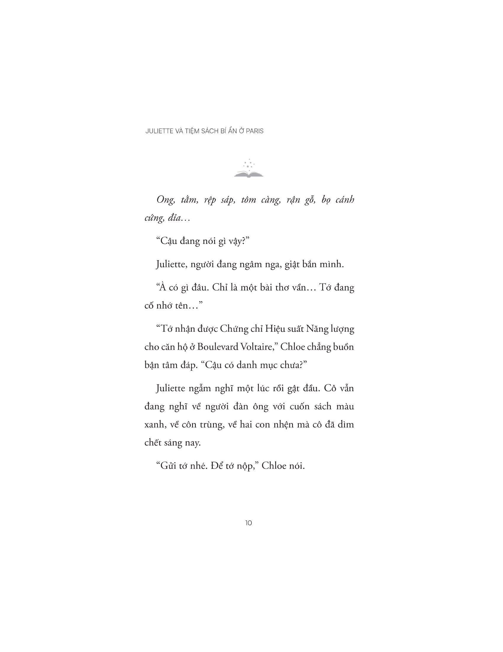 Ấm áp, hài hước và vui nhộn, “Juliette và tiệm sách bí ẩn ở Paris” là một câu chuyện về tuổi trưởng thành bị trì hoãn, về một phụ nữ trẻ dám thay đổi cuộc đời m.ình và tôn vinh sức mạnh của sách khi gắn kết con người chúng ta lại với nhau.