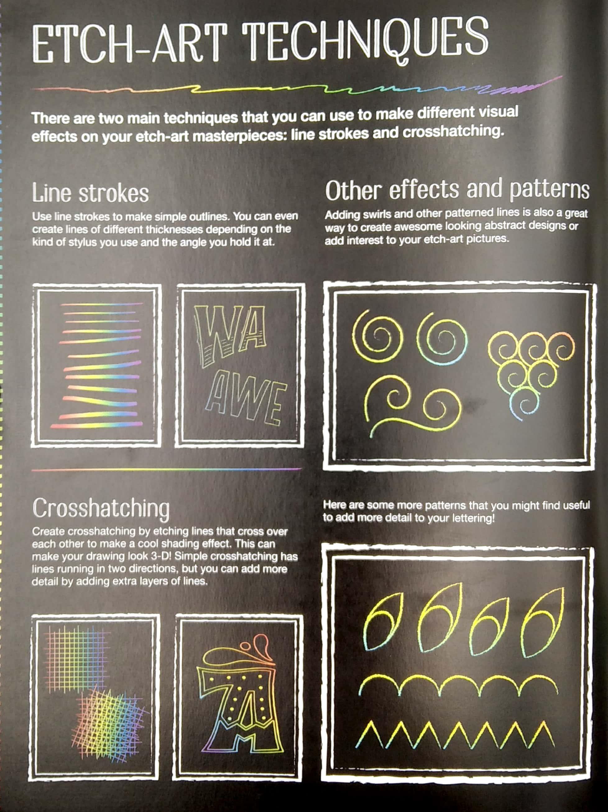 Kaleidoscope Etch Art Creations Hand Lettering Inspire creativity with Etch Art creations. This beautiful kit includes everything you need to create your own hand lettering designs. Just draw on the black etch paper with the